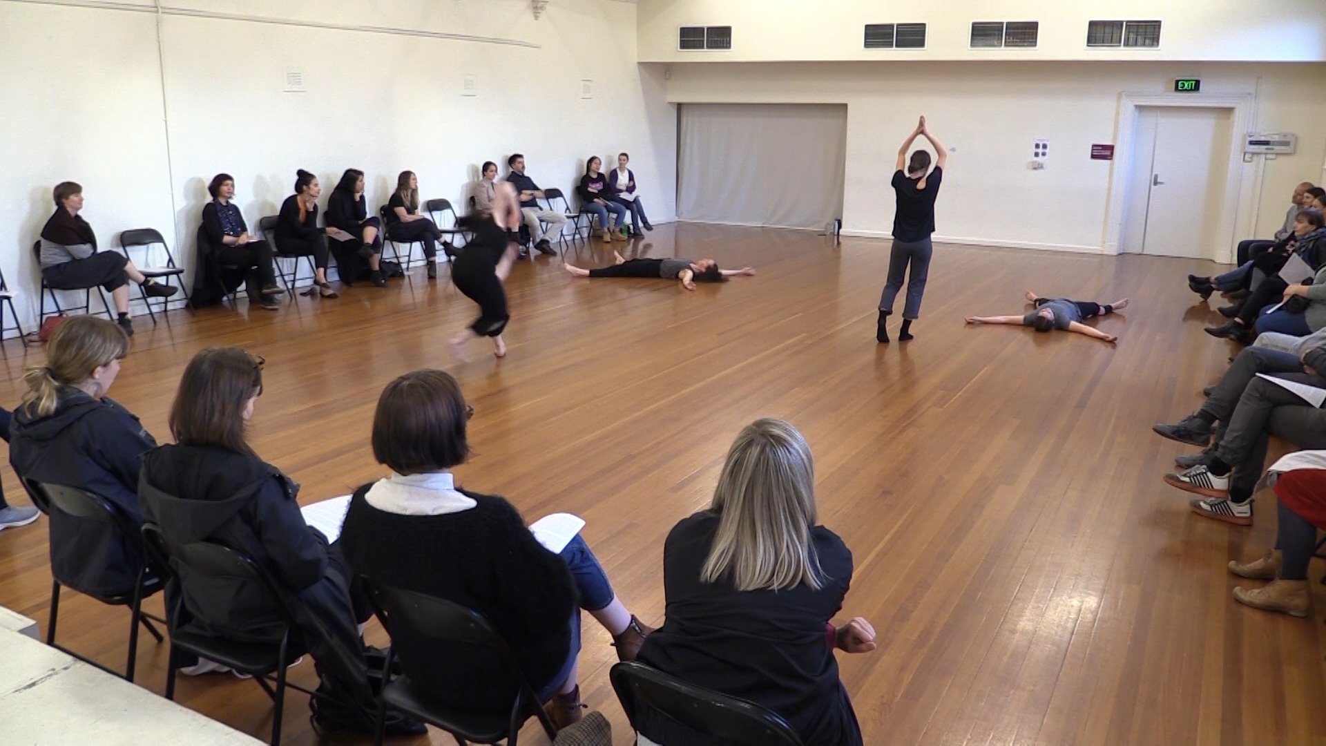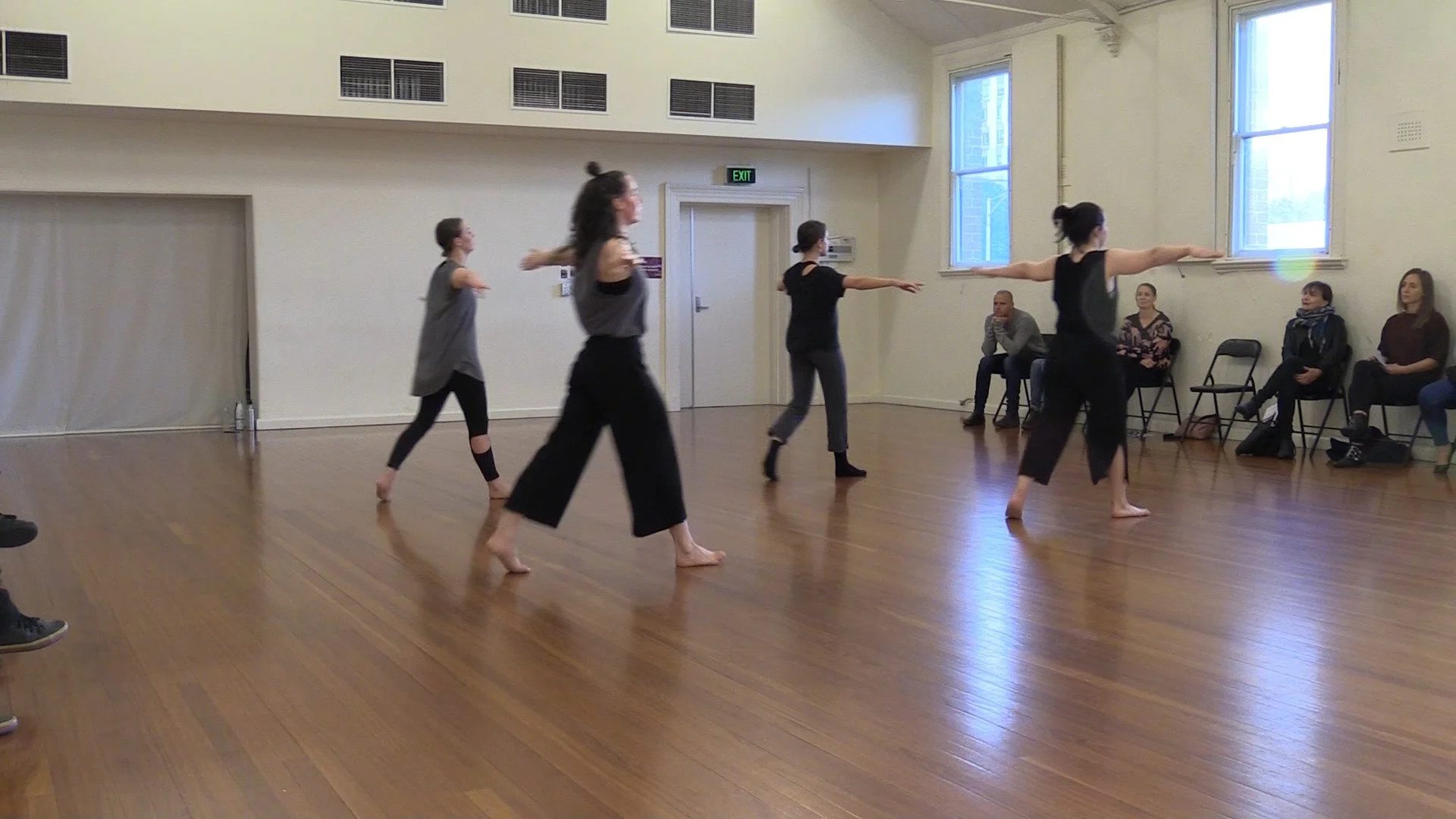 The set movement practice, a practice of repetition, emerged as another facet of my ‘making sense’ of practice. It began with physically interpreting and analysing video footage of Trisha Brown’s Accumulation (1971), which like my improvisation practice, is repetitive in its structure. In setting out to generate our own accumulation, we began by using Brown’s choreography, and the continued by adding our own movements to make one long accumulation. In introducing this set movement practice alongside my improvisation practice, I asked, how does knowing the movements to come affect how I notice the present? While it was not immediately perceivable, what became apparent was that the way in which I noticed the present in the accumulation, was similar to that of my dance improvisation practice. In coming to understand the similarities in my noticing between these two practices, I questioned whether these two practices could coexist as one.