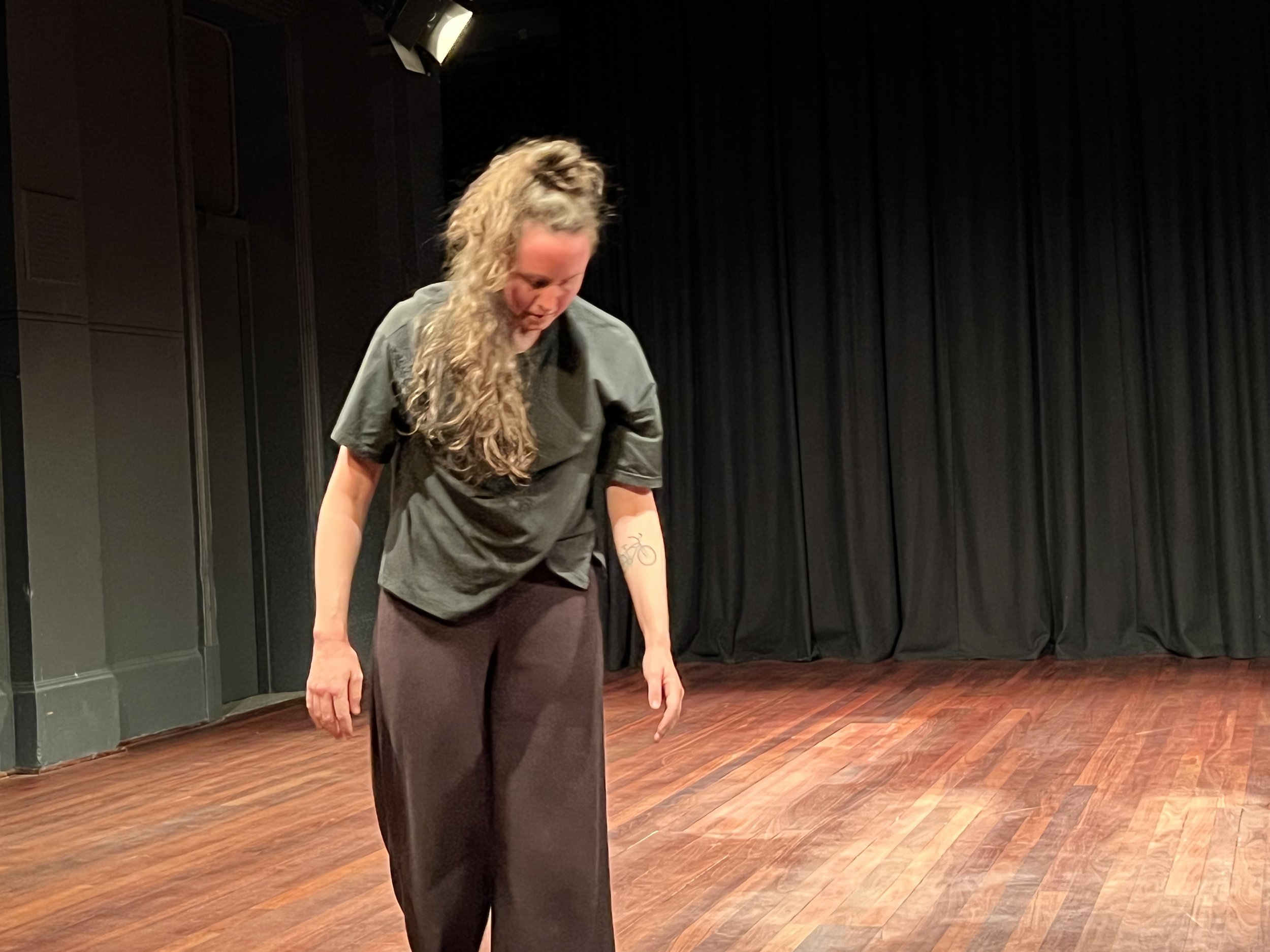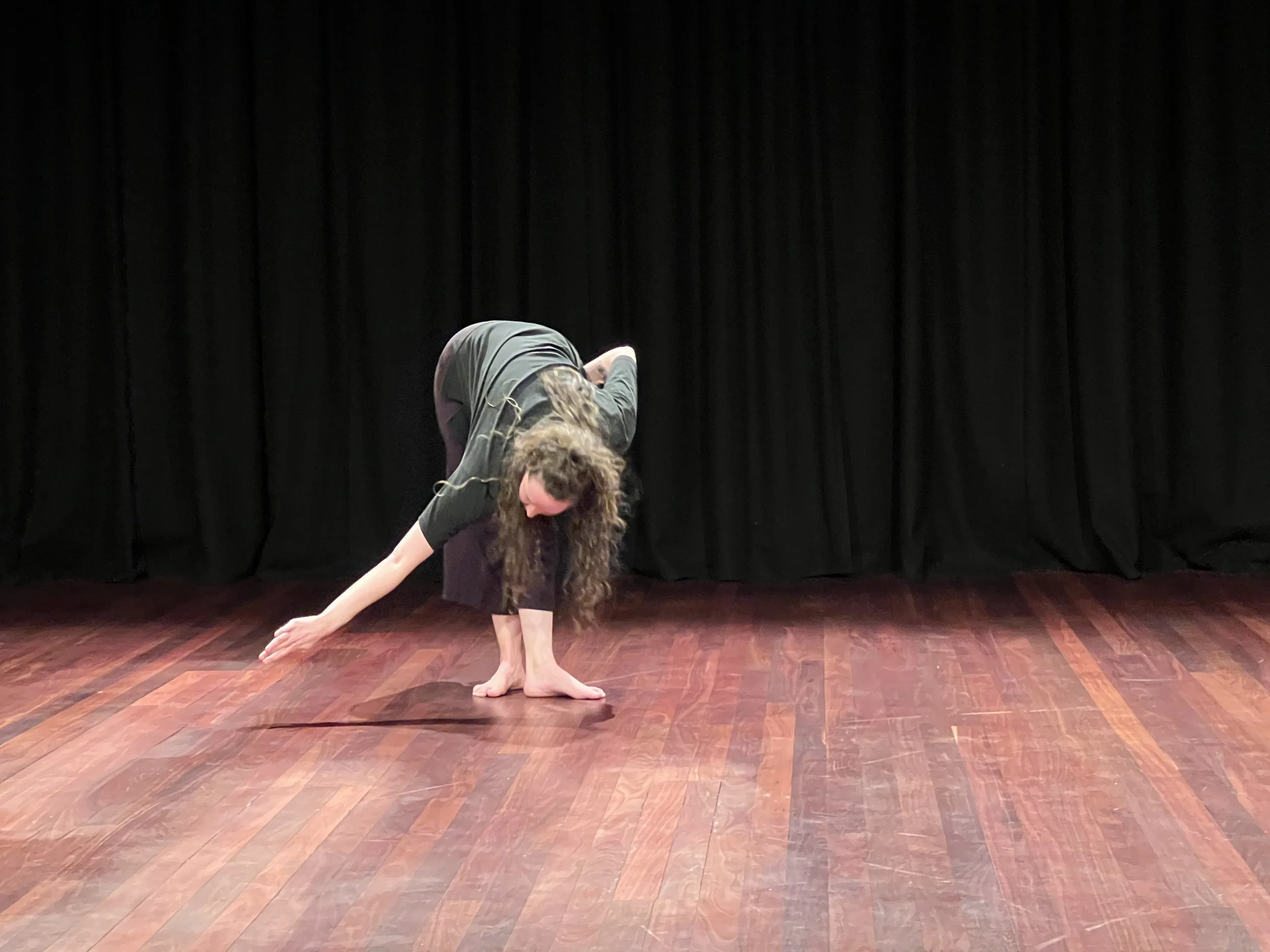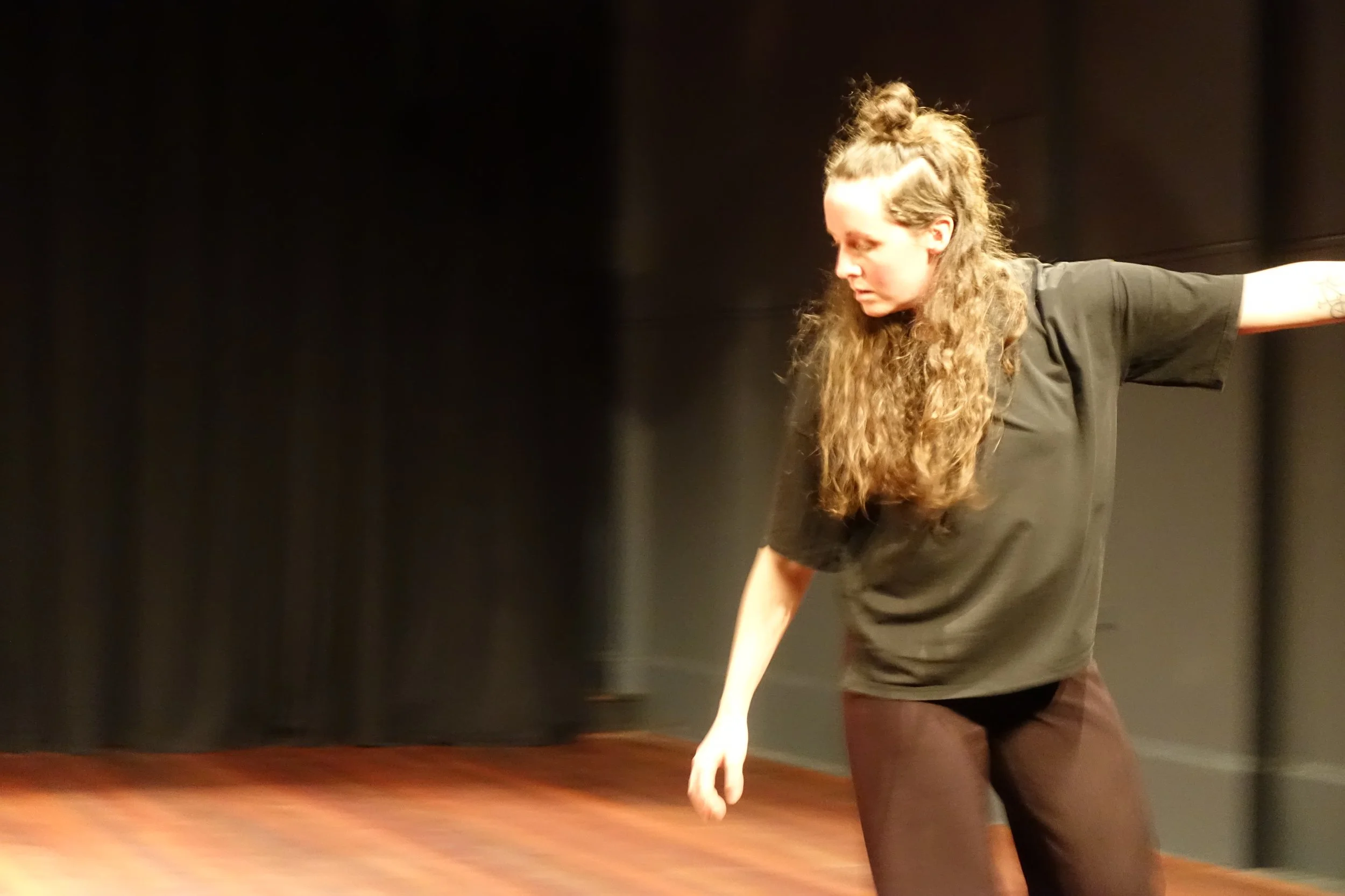She is dancing! is an improvised performance drawn from my doctoral research, using the fragment of text “she is dancing” as both an anchor and provocation. In this work, movement unfolds from the certainty contained in that phrase, the undeniable fact of dancing, and the parallel certainty of my queer feminine identity. Through embodied improvisation, She is dancing! traces the ways knowing, becoming, and being witnessed are held in the body, inviting audiences into a live exploration of presence, visibility, and unapologetic self-definition.