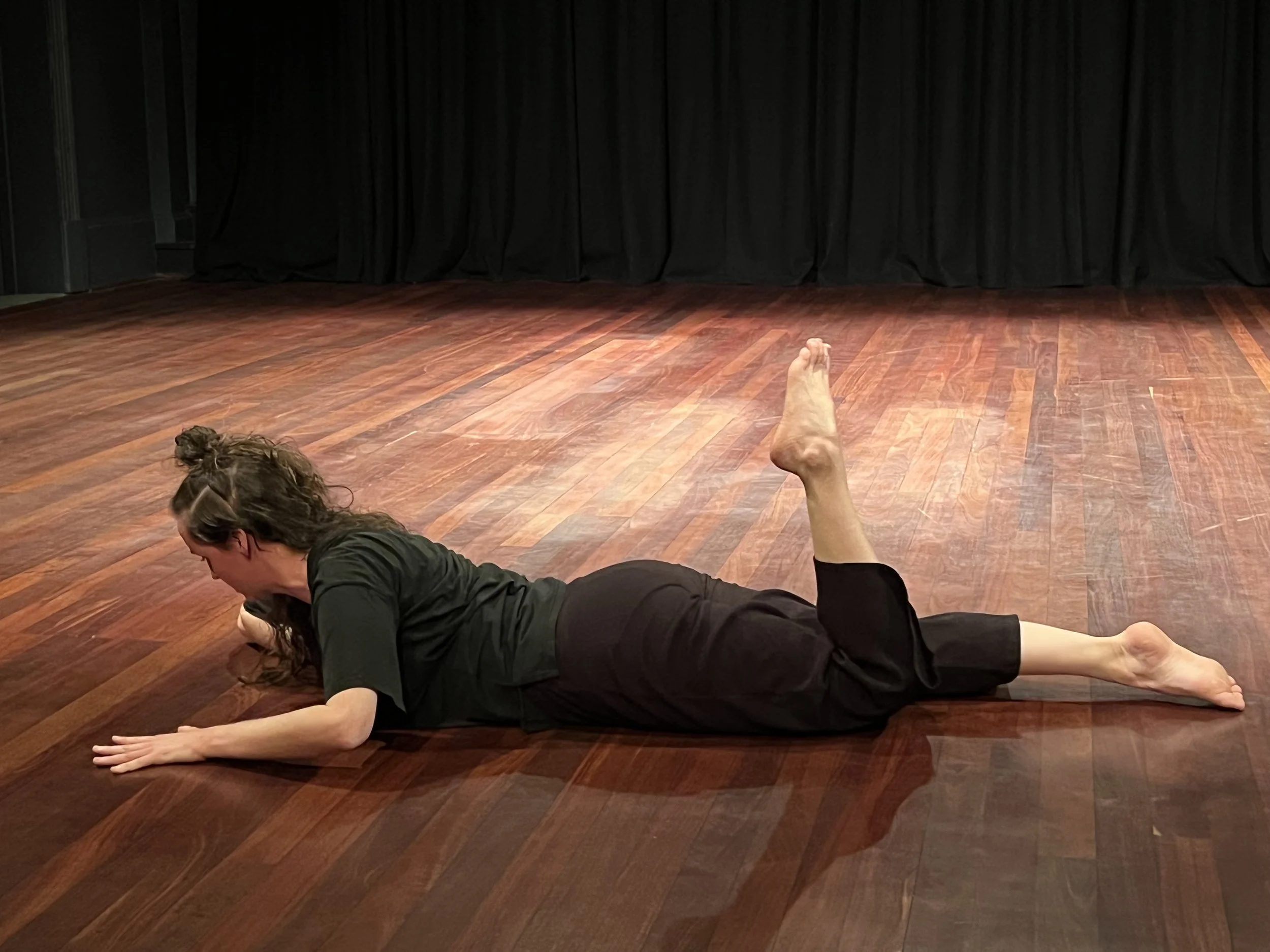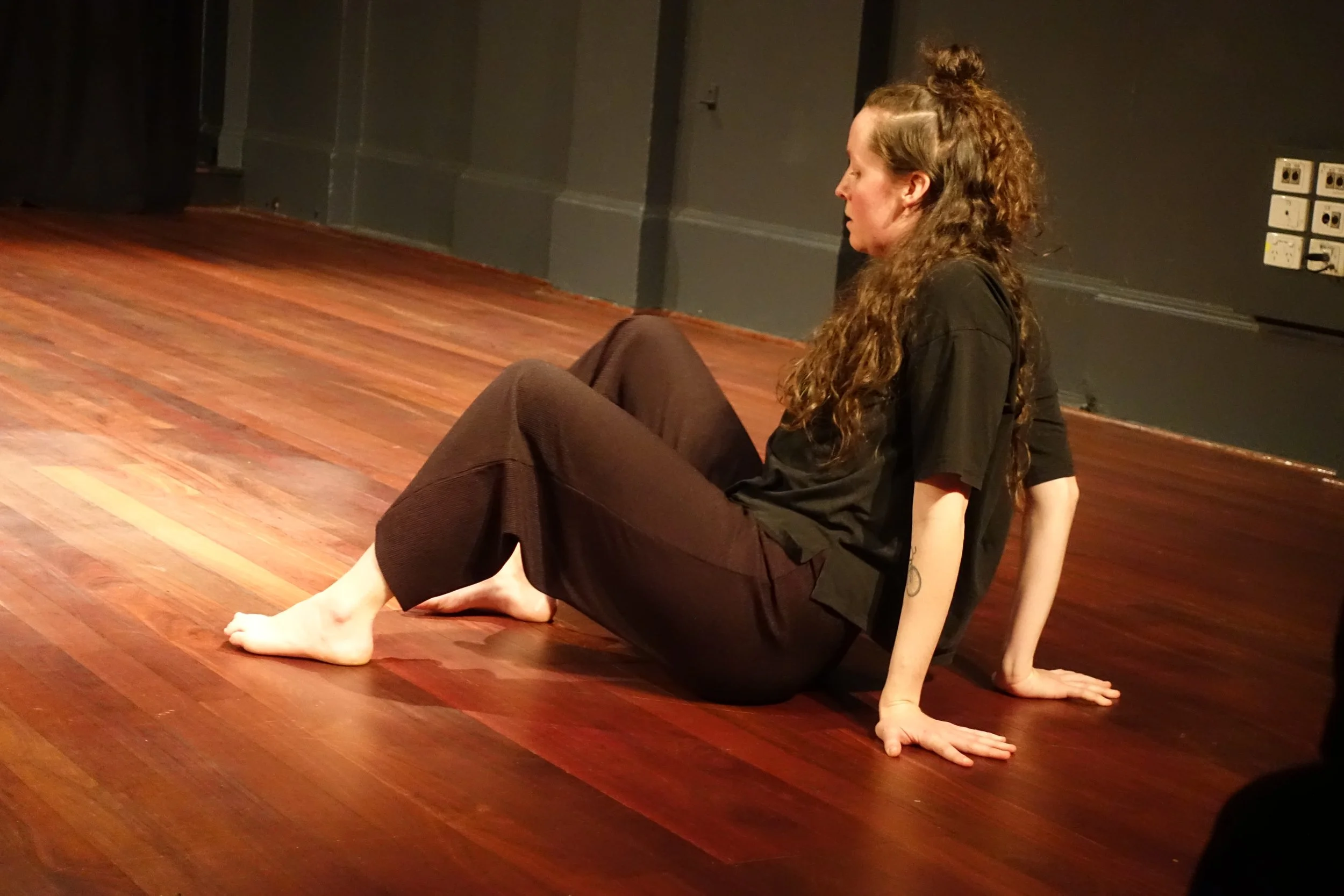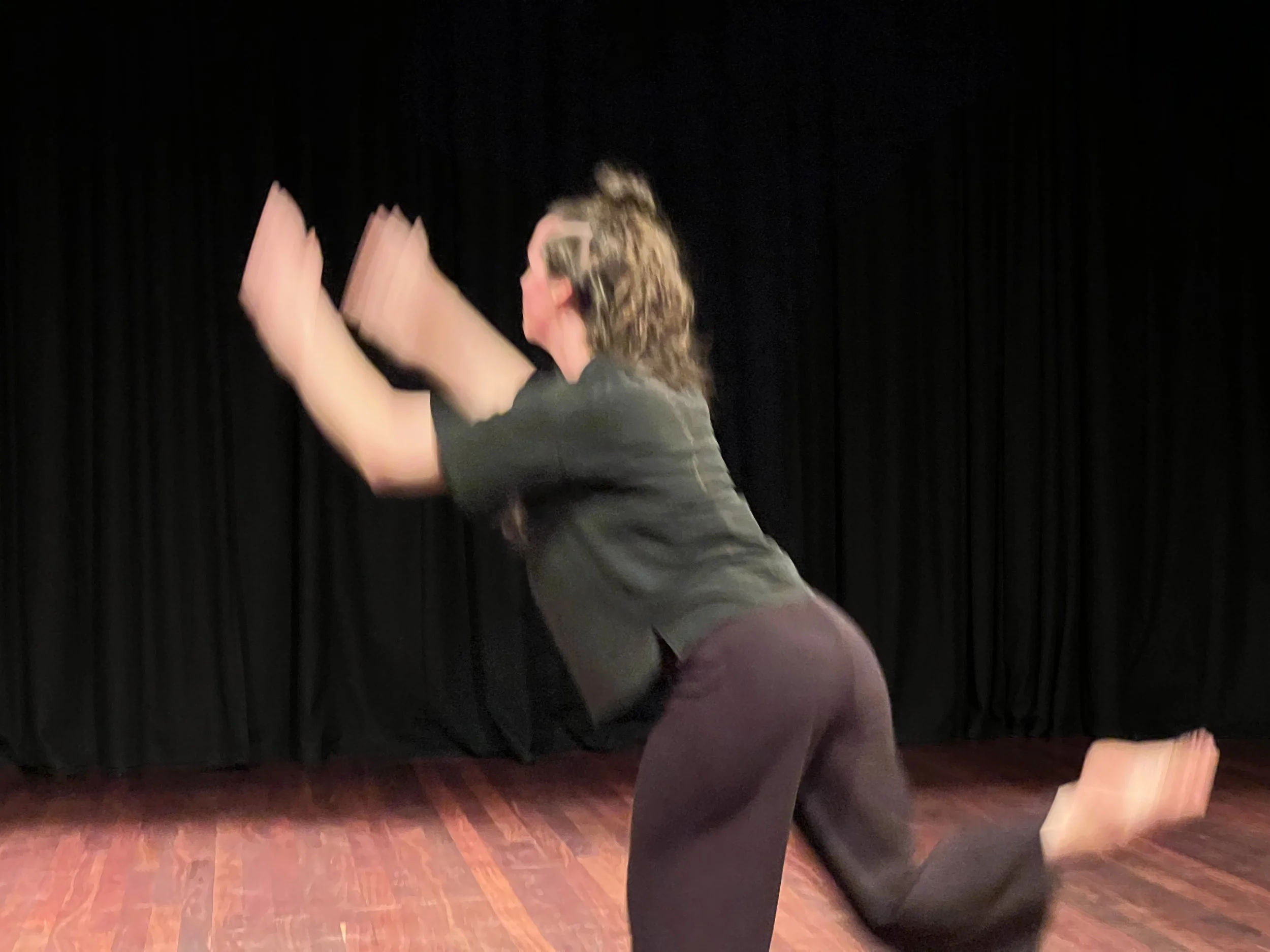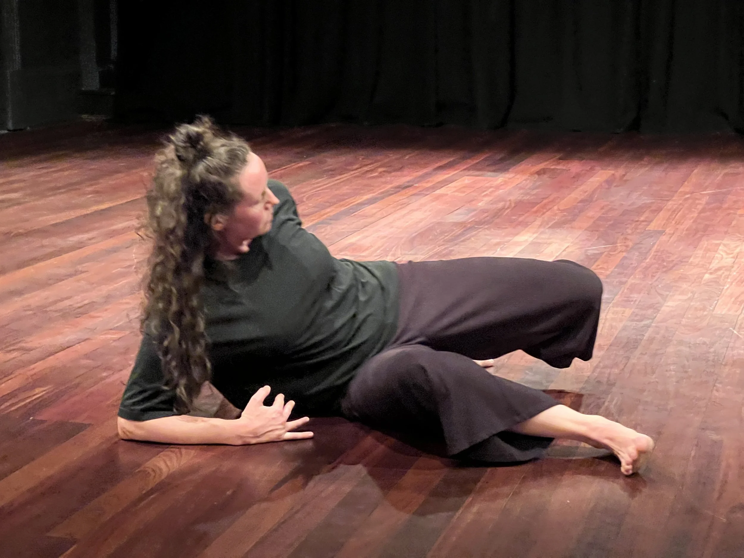She is dancing! is an improvised performance drawn from my doctoral research, using the fragment of text “she is dancing” as both an anchor and provocation. In this work, movement unfolds from the certainty contained in that phrase, the undeniable fact of dancing, and the parallel certainty of my queer feminine identity. Through embodied improvisation, She is dancing! traces the ways knowing, becoming, and being witnessed are held in the body, inviting audiences into a live exploration of presence, visibility, and unapologetic self-definition.